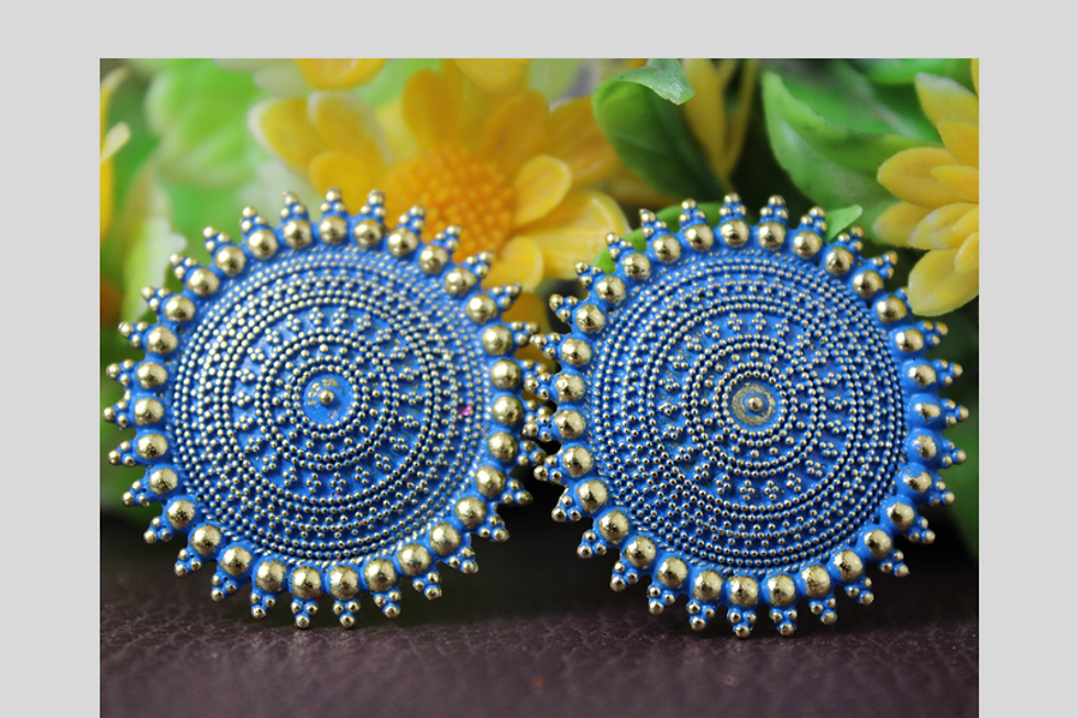 Turquoise Crystal with Triple ring Designer� Ethnic Jhumka earrings